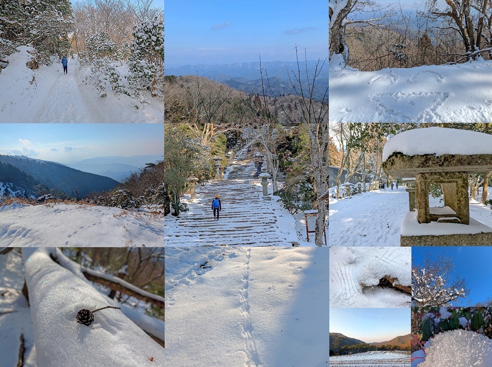 流石に雪の愛宕山、地蔵山にも竜ヶ岳にも踏み跡を残す方々がいて、首無し地蔵から、月輪寺方面から集う方々、この時点で、10人ばかりの予測は外れ、表参道の神社前では人波さえ出来る様子、流石に冷え込む木陰に人影は無い。 |