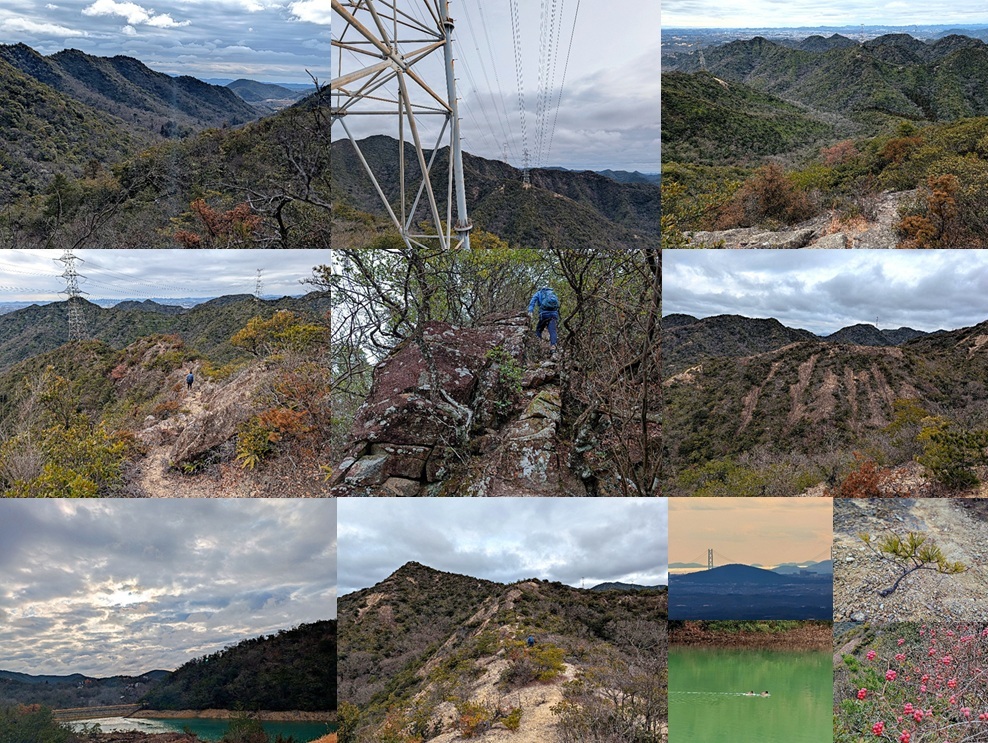 改めて国道を渡り結界を越え、姿なき住民の皆様の気配を探して廻池まで歩く。雨がないので池の水位は低下、巨大な岩塊が透けている。覗き込んでも3m位から下は昏として見えず、怖くなって思わず辺りを見回した。海も怖いが池の怖さはまた格別だ。さて、踏み跡の増えたP298への岩尾根ルート、登ると同時に良くなる景色、岩尾根の狭間に降る谷の様子は、日本アルプスに比べられる景色だと思っている。ただし、背後の街並みを無視する技術は欠かせない。